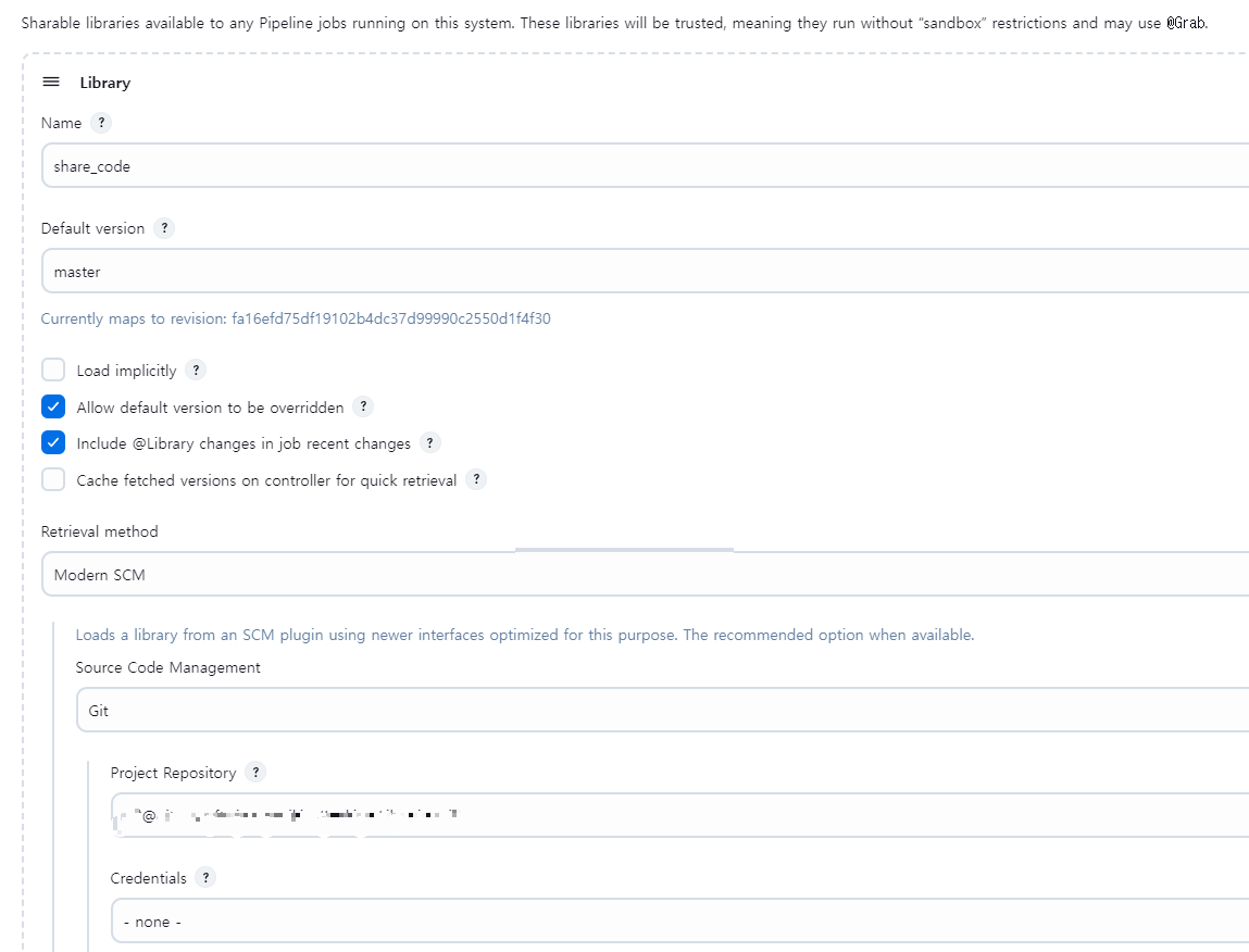 *바로 밑에 Global Untrusted Pipeline Libraries 도 있는데 느낌상 좋아보이지 않아서 저기엔 안했다.. ㅎ