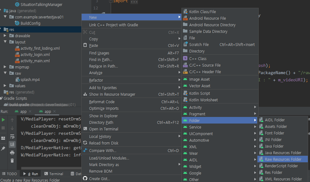 [AndroidStudio] VideoPlay, VideoView / raw폴더 생성 본문
