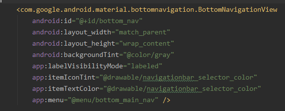 3. navigation bar UI가 있는 xml 파일에 drawable폴더에서 만든 리소스와 연결시켜주는 구문을 추가한다.