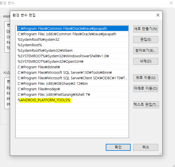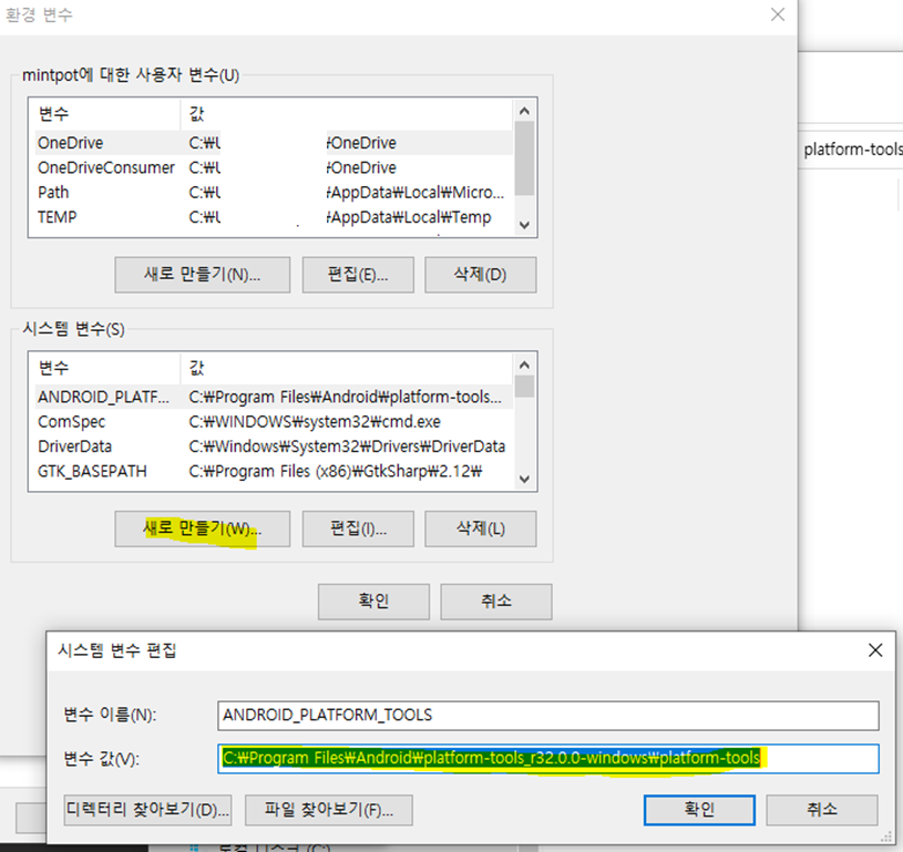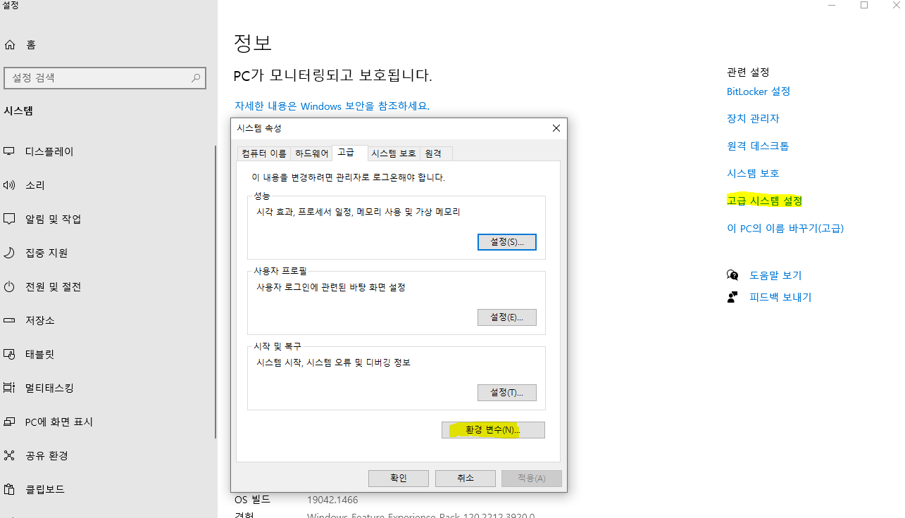 #설정 -> 시스템 -> 정보 -> 고급 시스템 설정 -> 환경변수 클릭