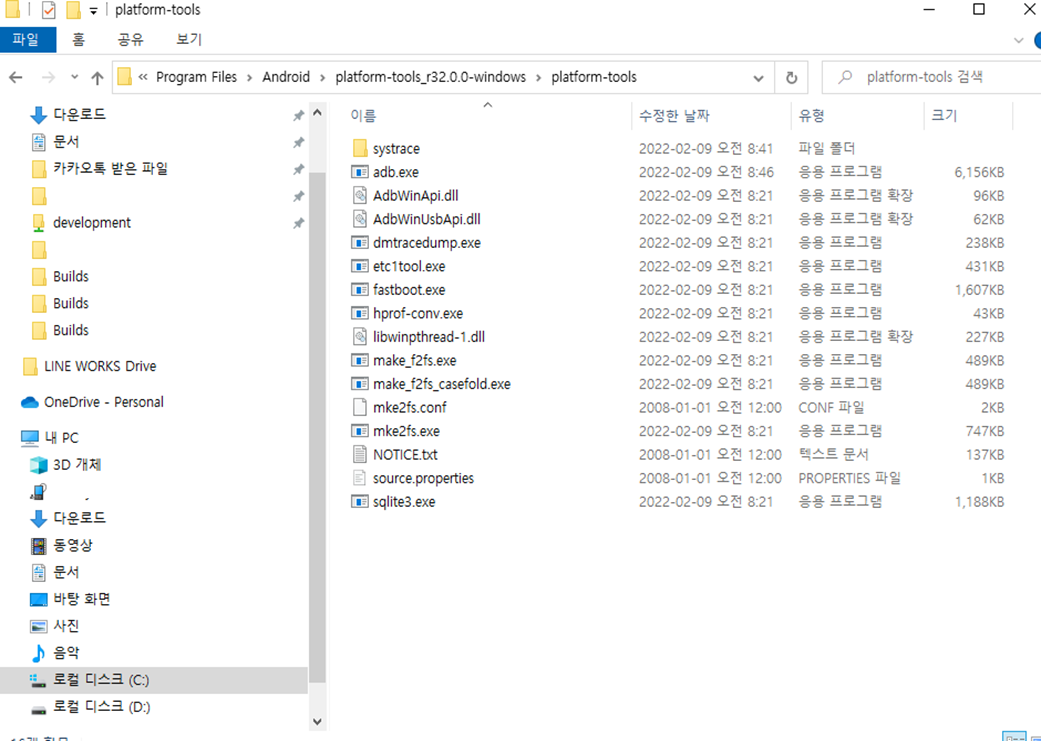 #위 사이트에 접속 Windows용 SDK 플랫폼 도구 다운로드