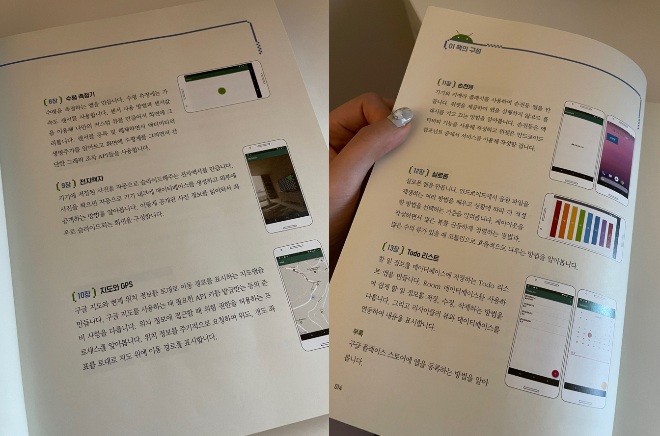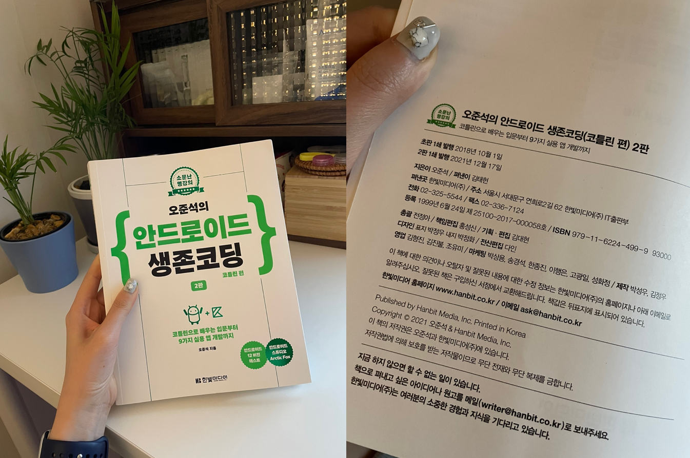 - 최신 버전의 안드로이드 버전 테스트가 완료됐기 때문에 하다가 헤매지 않아도 된다. (개발 책들은 최신판 위주로 공부하는 게 좋다..)