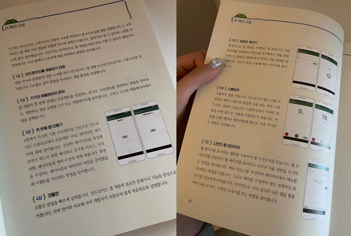 안드로이드 12버전(2021.10.04) 테스트가 완료된 안드로이드 실습 책이다.