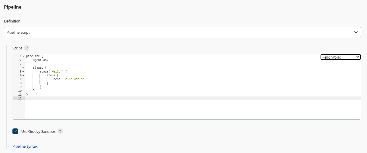 #[gitlab] Pipeline 에서 Hello world 클릭 후 하단 Pipeline Syntax 클릭