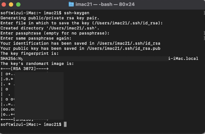 ssh-keygen -t rsa -b 4096 -C email(식별자) 로 입력하면 생성된다.