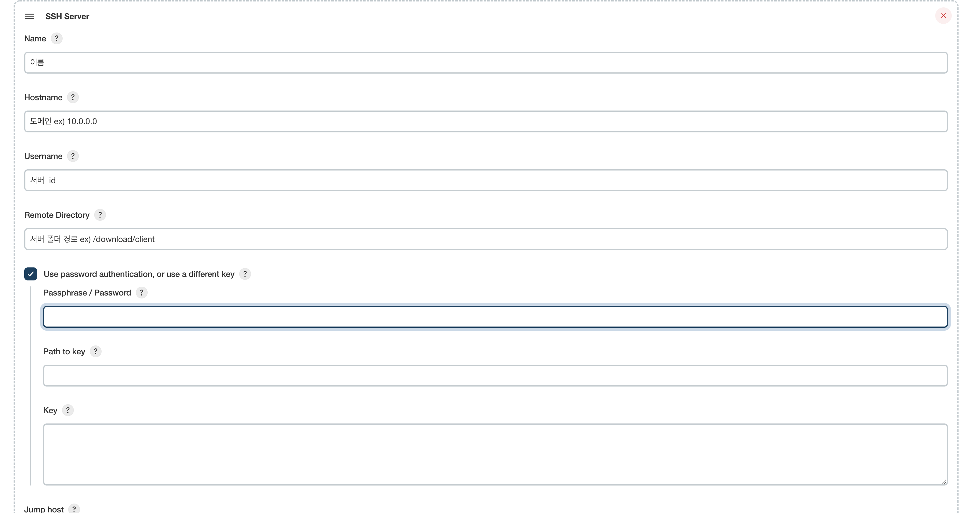 SSH Server name : 시스템설정에서 추가한 SSH 선택