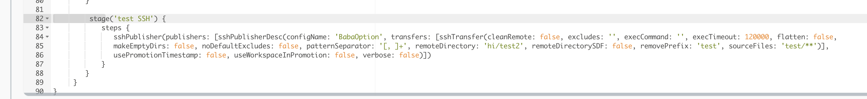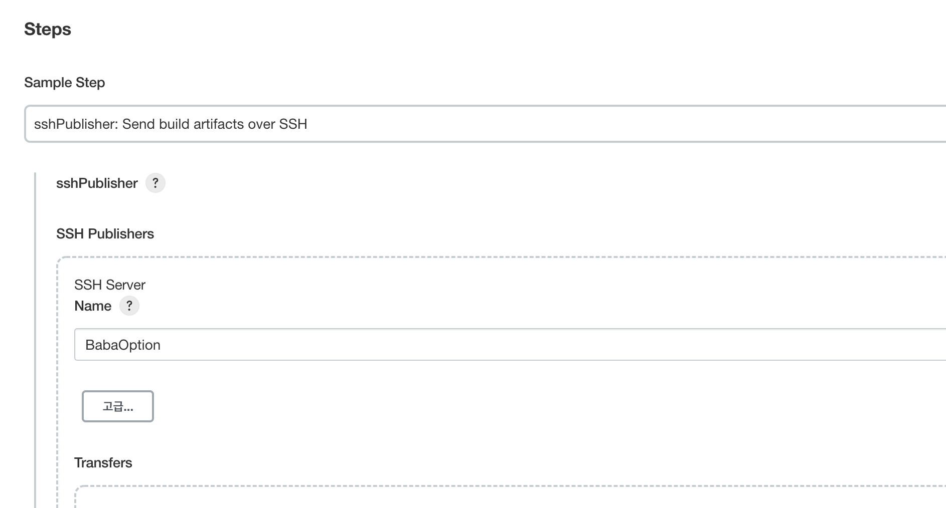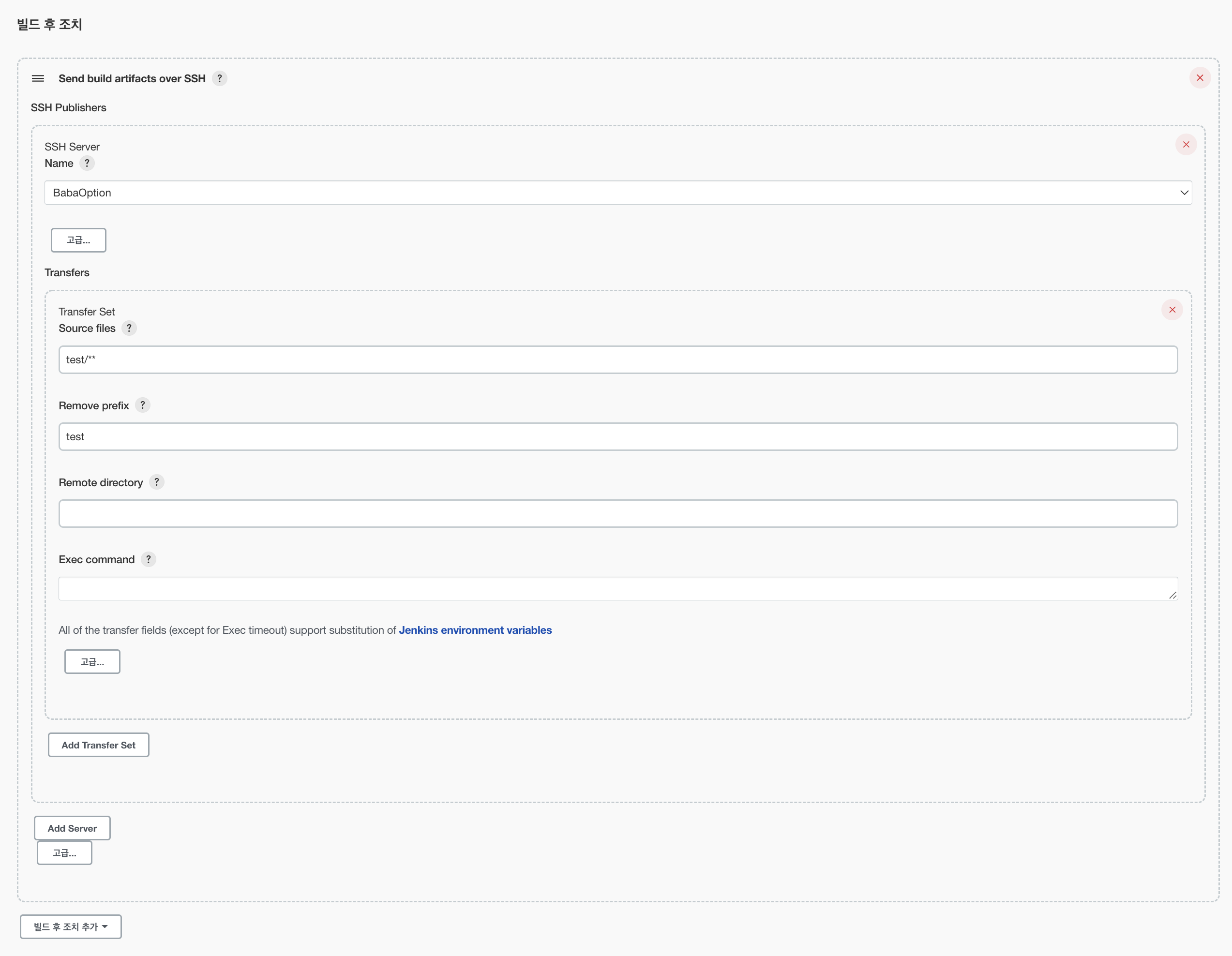 #sshPublisher: Send build srtifacts over SSH 클릭 후 위와 똑같이 기재