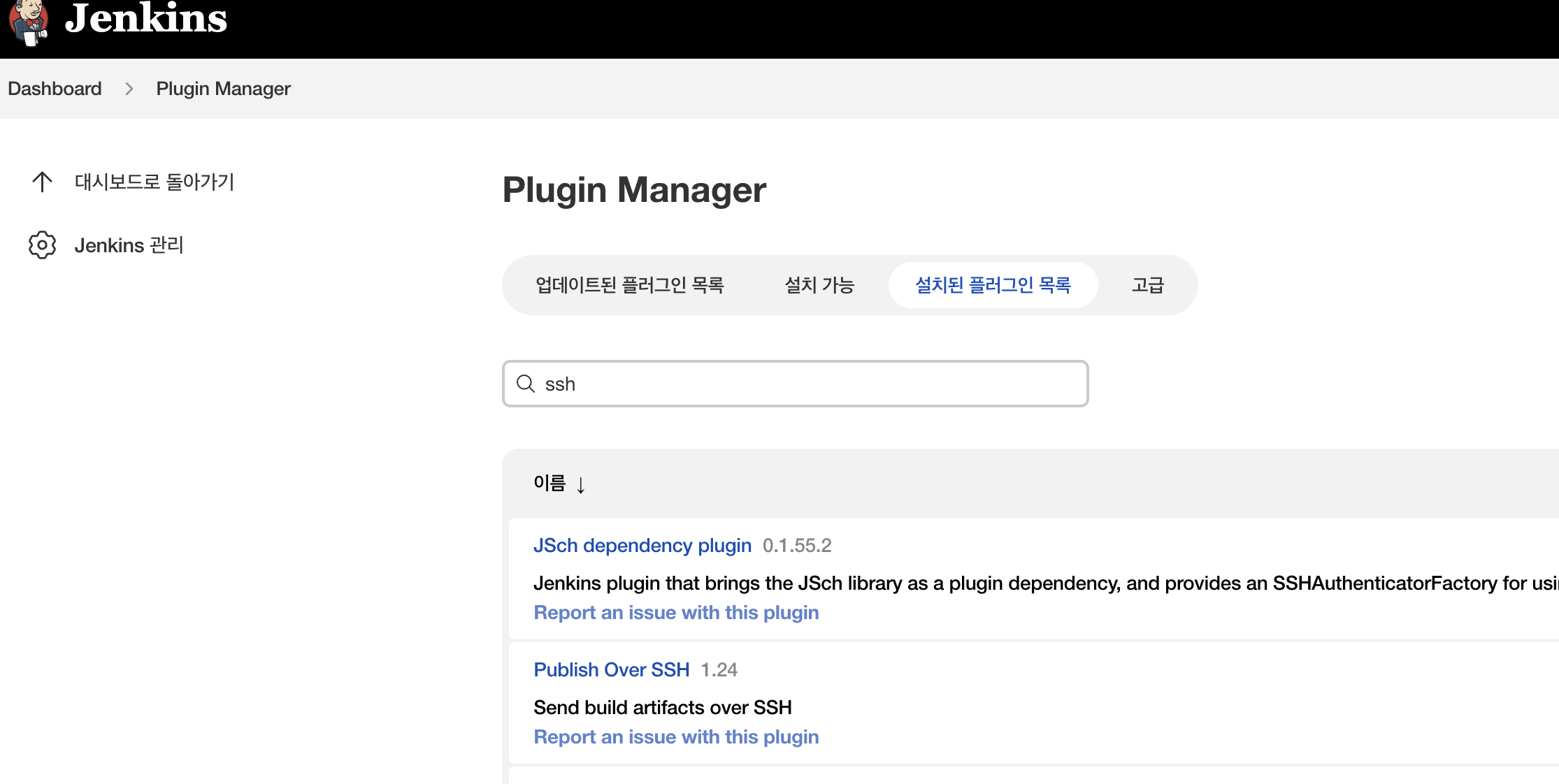 #[Jenkins] Plugin Manager 에서 Publish Over SSH 플로그인을 설치.