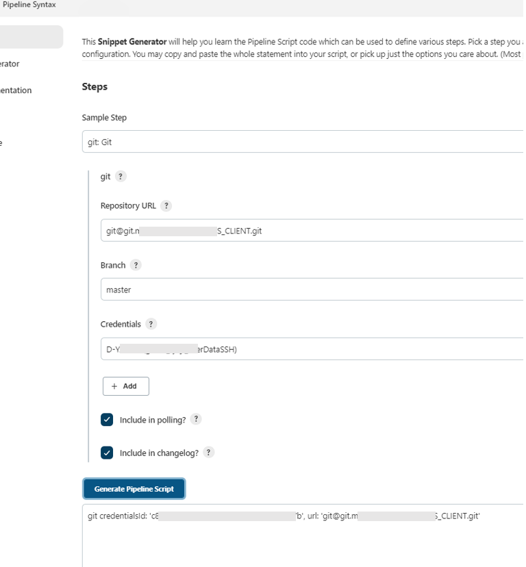 #Pipeline Syntax 클릭 후 스크립트 생성 후 추가